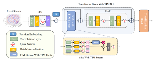 While Spiking Transformers have achieved strong performance on image tasks, relying solely on LIF neuron membrane potentials struggles to model temporal information effectively. To address this, the BrainCog team designed the Temporal Interaction Module (TIM) to enhance models’ ability to extract and analyze temporal representations. TIM is highly parameter-efficient, retaining SNNs’ low energy and high efficiency while significantly improving Spiking Transformers’ ability to model temporal information. Related work, TIM: An Efficient Temporal Interaction Module for Spiking Transformer, was presented at International Joint Conference on Artificial Intelligence 2024 (IJCAI2024).