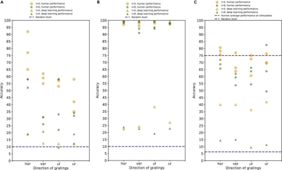 The study also recruited 24 human participants to evaluate how different parameter settings affected human illusory contour perception and digit/object recognition (Figure 5). Results showed that even the most advanced deep learning models lagged far behind human performance on the abutting grating illusion.