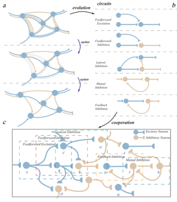 "Our team has long focused on brain-inspired cognitive intelligence, whose theoretical foundation is our brain-inspired plasticity framework — also the theoretical core of the BrainCog brain-inspired cognitive intelligence engine that we have developed and released. This framework features multi-scale and multi-dimensional aspects: in spatial scale, from ion-channel interactions at the micro-scale to neuron-to-neuron interactions at the meso-scale and coordinated brain regions at the macro-scale; in temporal scale, it involves the coordination of learning, development, and evolution. The deep integration of temporal and spatial scales shapes the low-power, high-performance, highly intelligent properties of biological brains and brain-inspired AI. In recent years, our team has made a series of advances and insights in integrating learning, development, and evolution. This study helps us further improve that framework. Through computational modeling, we simulate the 'use it or lose it' principle observed in natural structural evolution, autonomously evolving a rich variety of neural circuit types. The most interesting part is that these types of circuits also exist in real biological brains. Our experiments show these structures can better address core problems in learning and decision-making — 'what exists in nature makes sense' — offering endless inspiration for future research into general brain-inspired cognitive intelligence."
