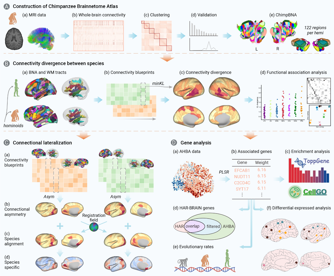 Figure 5. Genetic basis underlying cross-species (human vs. chimpanzee) brain connectivity differences