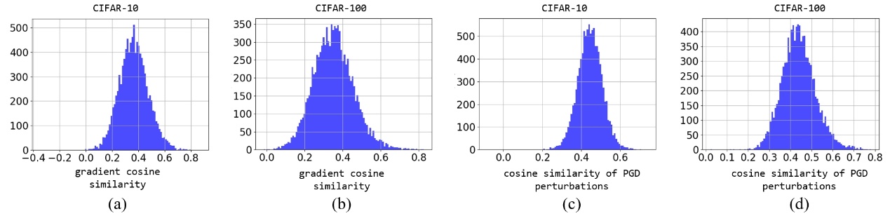 Figure 2. Gradient and adversarial perturbation cosine similarity analysis.