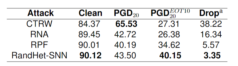 Stronger defense capability: RandHet-SNN's adversarial robustness surpasses randomization methods used in artificial neural networks (ANNs).