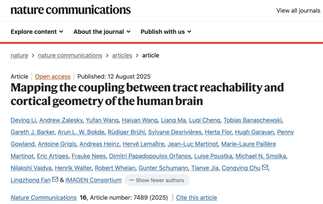 The first author of the paper is Deying Li, a doctoral student at The Laboratory of Brain Atlas and Brain-Inspired Intelligence, Institute of Automation, Chinese Academy of Sciences (currently pursuing further studies at the Donders Institute for Brain, Cognition and Behaviour in the Netherlands). Researcher Lingzhong Fan and Associate Researcher Congying Chu of The Laboratory of Brain Atlas and Brain-Inspired Intelligence, Institute of Automation, Chinese Academy of Sciences, are the corresponding authors. The paper’s collaborators include Professor Andrew Zalesky of the University of Melbourne, Professor Tianye Jia of Fudan University, and Associate Professor Luqian Cheng of Guilin University of Electronic Technology. This study was supported by the National Science and Technology Innovation 2030 Major Project “Brain Science and Brain-Inspired Research” and the National Natural Science Foundation of China.